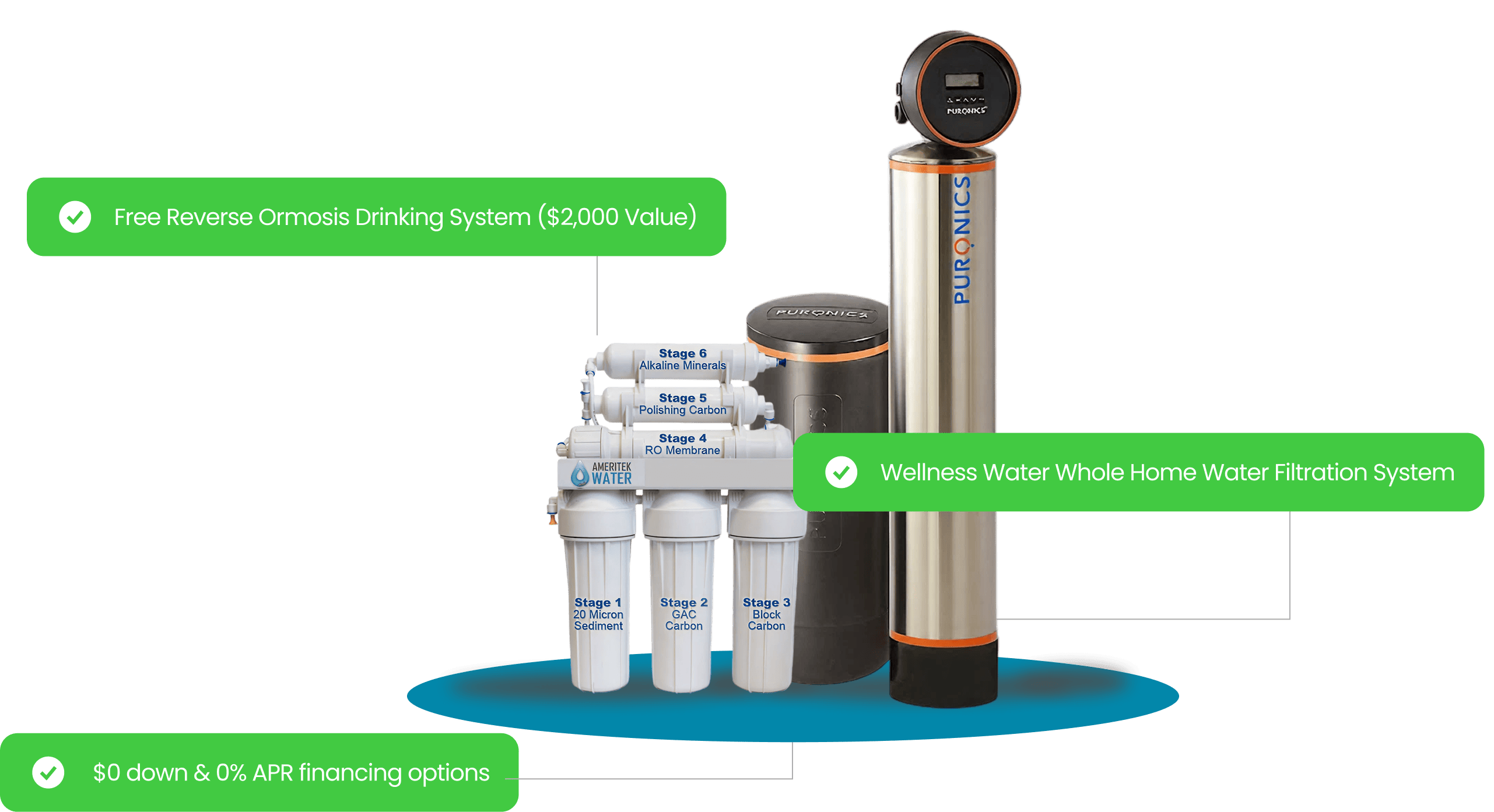 We’re offering the next 5 qualified homeowners our Puronics Whole-Home Water Filtration System for just $99/month, with 0% interest financing and zero money down.